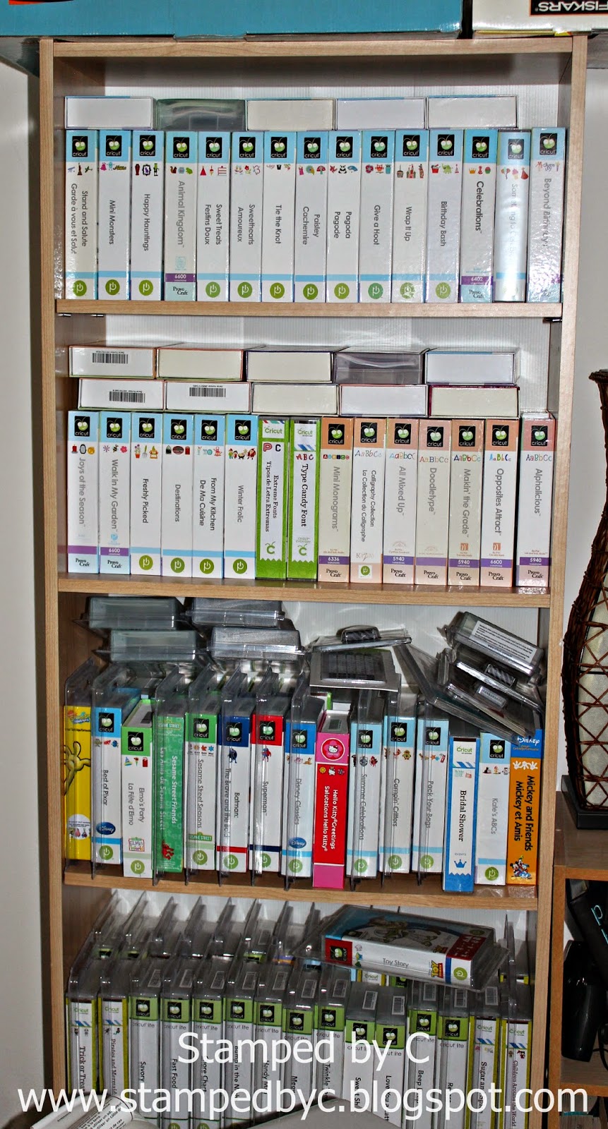 I noticed that most of my craft room "real estate" was taken up by my Cricut cartridges. I have over 150 of them, and all of them are still in their original boxes. And some are even unopened. Here, take a look: